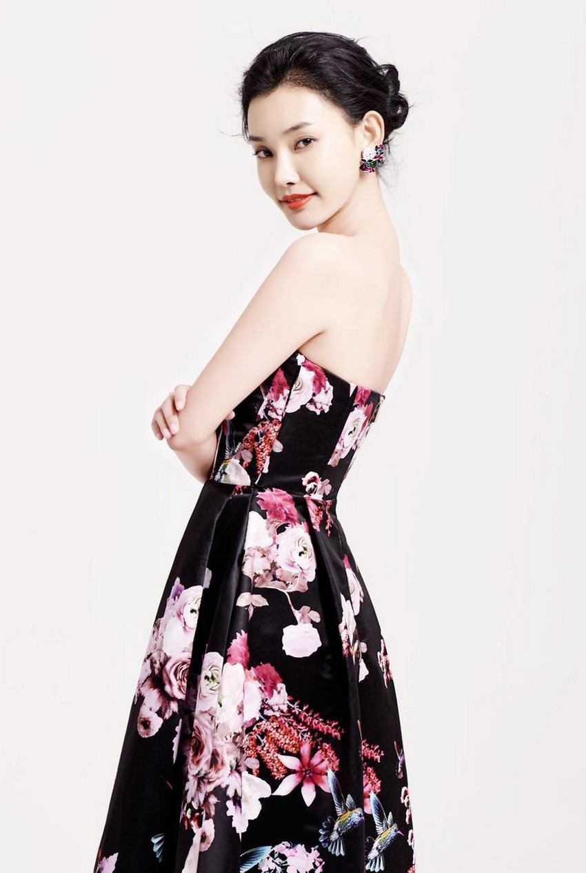 童菲,这位以其清新气质和灵动表演为人所知的演员,在此次拍摄中展现出了不同于荧幕形象的恬静与柔美。她身着的抹胸长裙,以淡雅底色铺陈,其上点缀着色彩柔和、形态各异的花朵图案,仿佛将整个花园的盎然生机穿在了身上。抹胸的设计恰到好处地展现了其优雅的肩颈线条与锁骨,既不失含蓄,又平添了几分轻盈的性感。