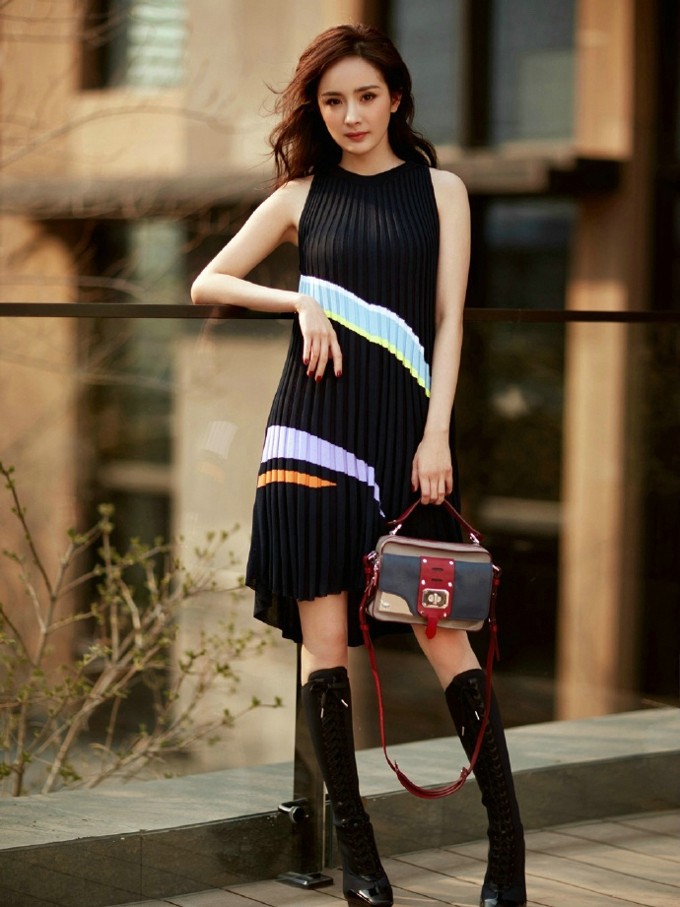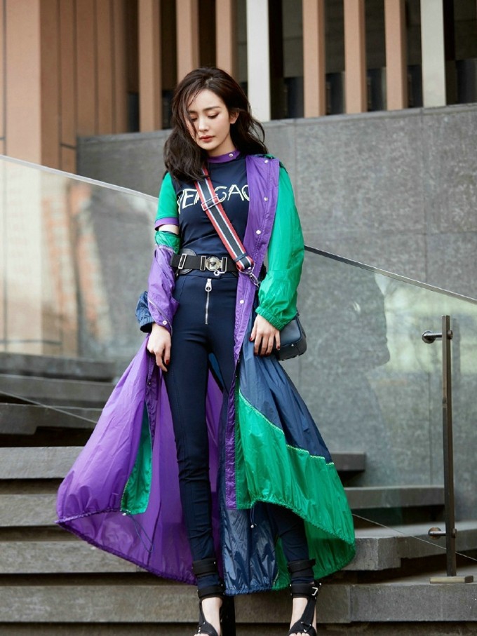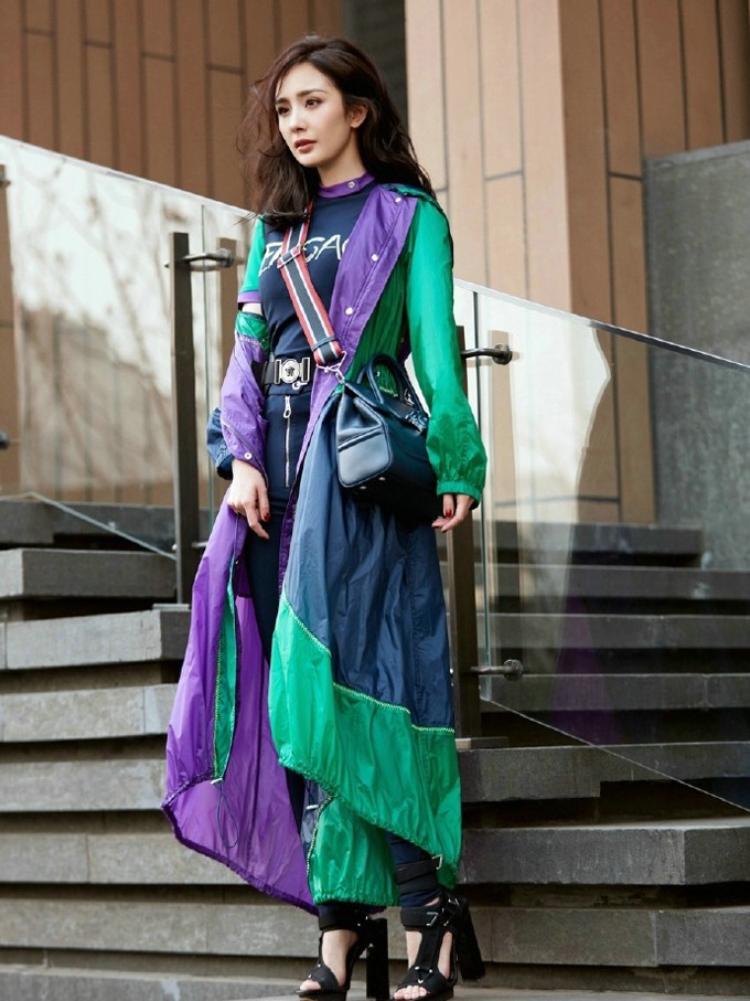 杨幂街头光影漫步 从容自在诠释时尚真谛