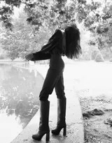 最终,这组《光影间沉静绽放的斐然之美》超越了单纯的视觉欣赏。它是一首用光影谱写的散文诗,邀请观众一同暂离浮躁,在张小斐沉静而迷人的神态中,在湖光山色的黑白映画里,找到片刻内心的宁静,并重新发现:在光与影的永恒对话中,那份源自本真的、不喧哗的自由与美丽,如此动人心魄。